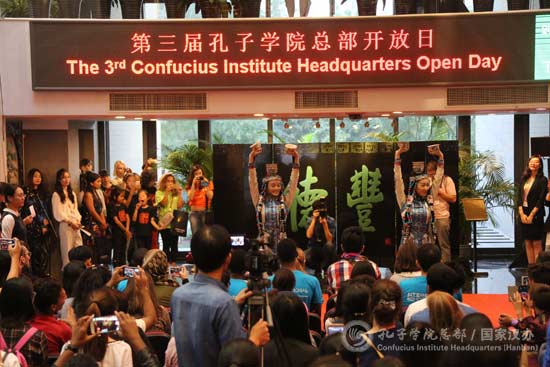 9月23日,以“多元文化在丝路”为主题的第三届孔子学院总部“开放日”在京举行。44个国家驻华使节、文化机构代表,国资委、国家体育总局、北京市教委、西城区区委区政府等部门代表,40多所孔子学院中方承办院校代表,部分支持孔子学院建设的企业代表,以及来自60多个国家的孔子学院奖学金生等300多人参加了此次活动。