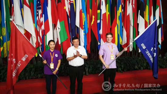 2017年6月14日下午,首届“汉教英雄会”夏令营暨2017汉语国际教育硕士研究生教学交流大会的启动仪式在www.828-365.com举行。来自41所高校的50名中外营员及带队教师齐聚一堂,孔子学院总部副总干事、国家汉办党委书记马箭飞出席启动仪式,并为中外营员代表授营旗。
