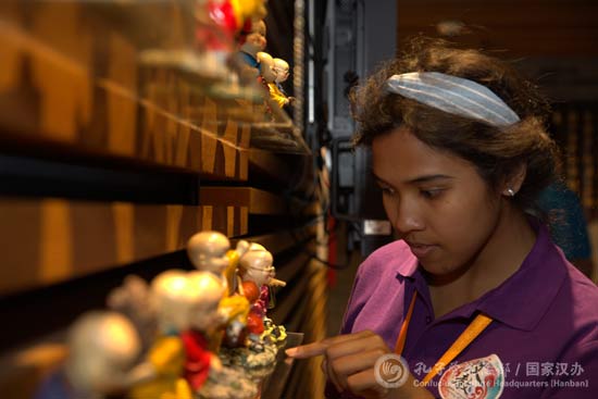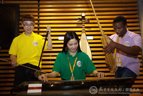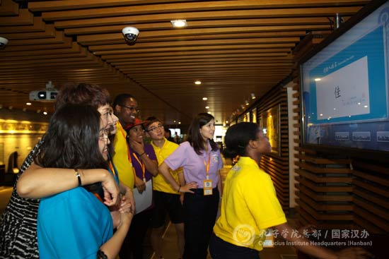 全体营员和带队教师在总部大楼万国旗前合影,并兴致勃勃地参观了中国文化体验中心,近距离体验中华文化的博大精深。参赛营员们现场穿戴起“京剧”服饰、体验数码京剧头像、“演奏”古琴等。来自中山大学的俄罗斯参赛营员安德烈表示,参加“汉教英雄会”既收获了友谊,也提升了自己的汉语教学水平。谈到接下来的比赛,他跃跃欲试,希望自己可以展现出汉教人的风采。