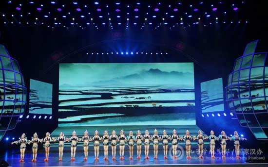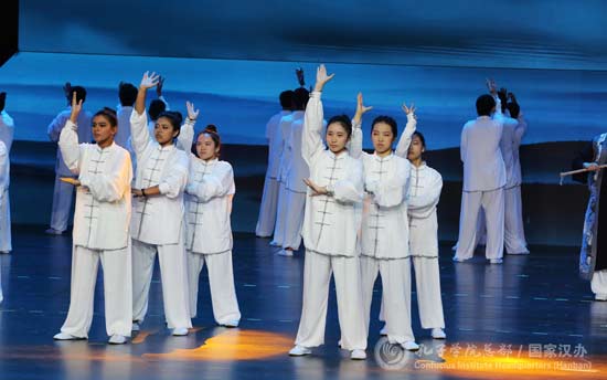 总决赛赛场上50名丝路同行夏令营营员和50名中国孩子为大家带来了精彩的太极表演《男儿当自强》。中国的中学生将中国少数民族传统舞蹈哈尼木屐与西方踢踏有机融合,为观众呈现出青春与活力的《东方踢踏》。汉语桥的选手们也不甘示弱,他们为大家带来节目《艺韵中华》,表演中融合了朗诵、中国民乐、古典水袖舞、书法、绘画等特色桥段,绚丽的舞台上亮出了选手们的“中国范”,现场掌声雷动。