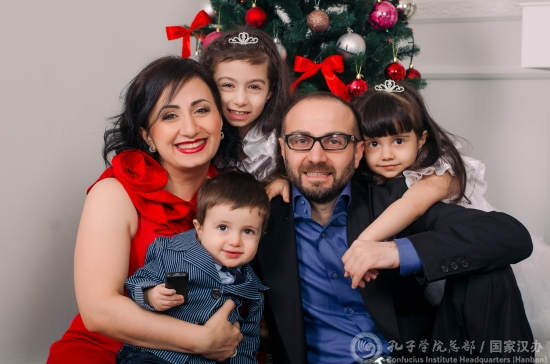在乌克兰首都基辅,有一个幸福的五口之家:妈妈卡琳娜·格沃尔亚(Karina Gevorgyan)是一位名汉语教师,大家都叫她“卡老师”;爸爸阿拉拉特·捷尔捷良(Ararat Terteryan)是一位商人;他们有两个漂亮的女儿和一个可爱的儿子。这是基辅国立语言大学孔子学院的“明星家庭”,他们来自亚美尼亚,生活在乌克兰,却与汉语和中国结缘。