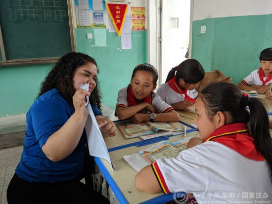 5月18日,美国康涅狄格州中央州立大学孔子学院访华研修团赴山东省第一书记驻东明县小井镇白佛寺村开展小学支教活动。此次活动由孔子学院中方合作院校山东师范大学组织,旨在让孔子学院学生访华团学习体验丰富的中国传统文化、近距离观察中国基础教育现状,感受中国的发展及变化。