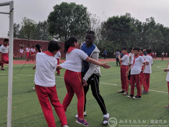 课堂教学结束后,访华研修团师生和小学生们在操场开展了扔沙包、跳皮筋、摇大绳、老鹰捉小鸡等游戏活动。热闹开心的活动,让快乐写在每个人的脸上。附近的村民也闻讯赶来,纷纷加入活动,年逾九旬的老太太乐呵呵的看着村子里第一次来了“洋学生”。