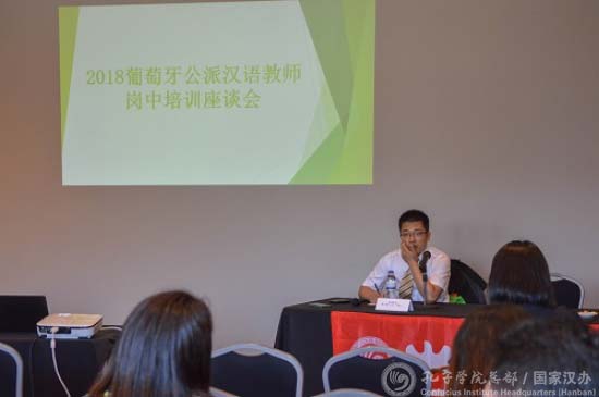 莫拉伊斯在致辞中表示,此次培训恰逢葡萄牙孔子学院成立三周年,意义重大。在过去的三年里,孔子学院扎根本土,积极拓展阿威罗及周边地区的汉语教育和文化推广工作,取得了可喜的成绩。目前,孔子学院配有7名葡籍本土教师及5名中国籍汉语教师,汉语教师除参加每月的定期汉语教师培训之外,还积极参加孔院组织的各种文化推广活动,为汉语教学本土化做出了突出的贡献。他希望各位学员通过本次培训丰富汉语教学理论知识,并应用在未来的汉语教学中,培养出更多优秀的学员。