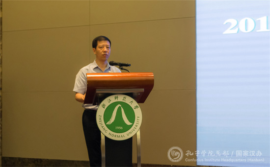 孔子学院总部副总干事、国家汉办副主任马箭飞,浙江省教育厅副厅长于永明,浙江师范大学校务委员会主席蒋国俊出席结业仪式并致辞。美国俄勒冈大学孔子学院外方院长古艾玲、津巴布韦大学孔子学院外方院长李开明代表学员发言。