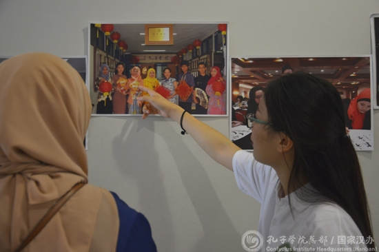 志愿者为学生讲解孔院历史