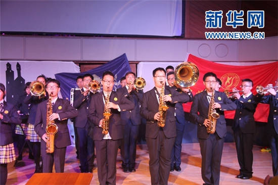 格莱特舒尔高中的学生在演唱南非歌曲。新华网发