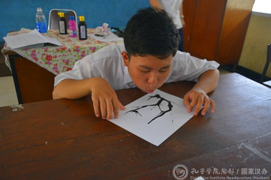 学生在吹画