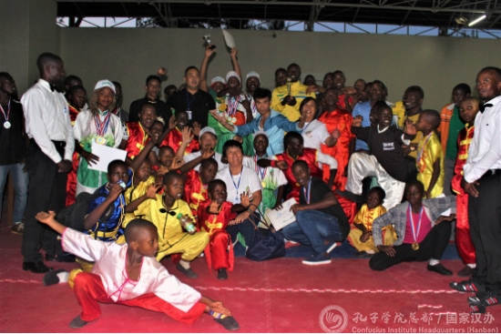 卢旺达大学教育学院孔子学院武术教师兼卢旺达武术协会顾问苏文介绍,卢旺达修习中国功夫的氛围浓厚,有着悠久的群众基础,武术发展呈现出“从娃娃抓起,讲究性别比例平衡”的传播态势。卢旺达现共有23家武术俱乐部,分布在全国各省市,约有2500名武术注册学员。此次国际赛事对于卢旺达全国武术精英而言,是一次“千丘论剑”。卢旺达还有很多武术爱好者,中国武术课程已开始进入到当地各个学龄阶层的大、中、小学校。
