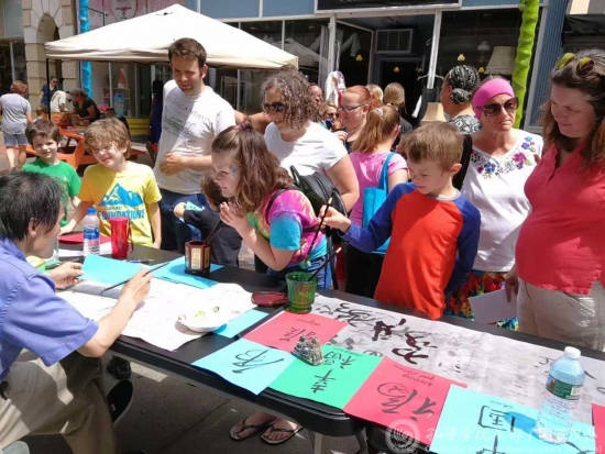 当地时间6月2日,美国纽约州立奥尔巴尼大学孔子学院应邀参加斯克内克塔迪市一年一度的儿童文化节,为当地的孩子们带来了书法、剪纸等中国传统文化体验活动。