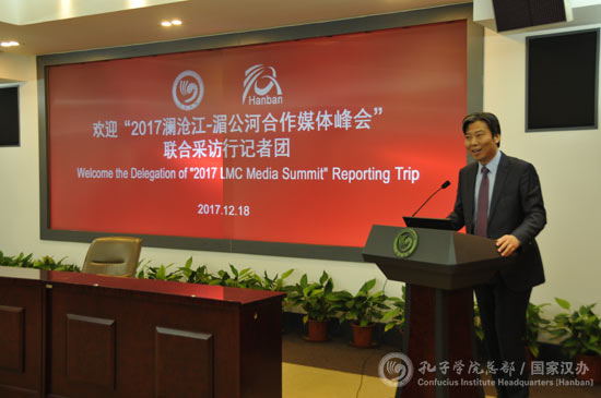 12月18日,“2017澜沧江-湄公河合作媒体峰会”联合采访行记者团一行40名主流媒体资深记者访问www.828-365.com。孔子学院总部副总干事、国家汉办副主任郁云峰接待了该记者团并座谈。