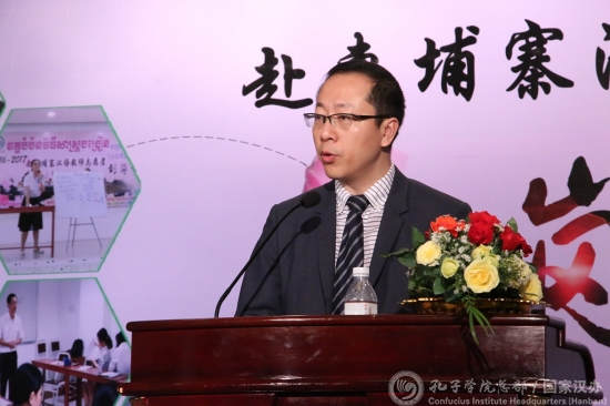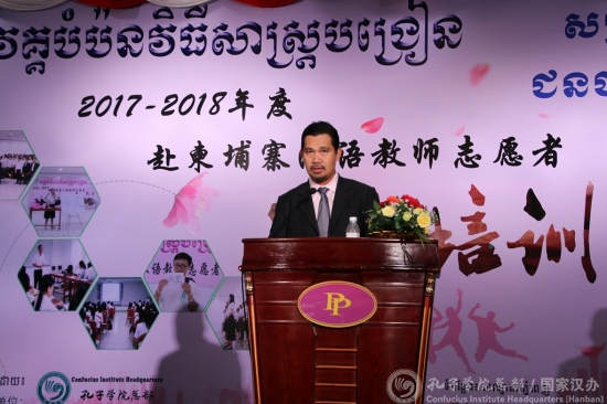 索桑南在致辞中表示,王家孔院能够取得今天这样的好成绩,离不开中国驻柬埔寨大使馆和中国国家汉办的支持与帮助。他希望汉语教师志愿者共同努力,时刻牢记心中的责任,把汉语教学和中柬文化交流推向一个新高度。